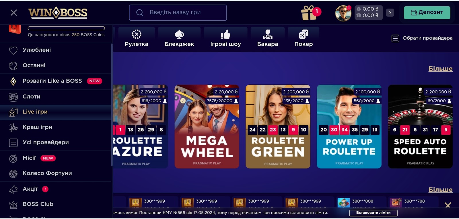 • Шаг 2: Делайте ставки в любых играх WinBoss — каждый 1 ₴ = 1 BP.
